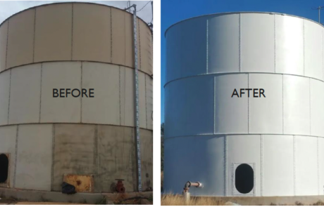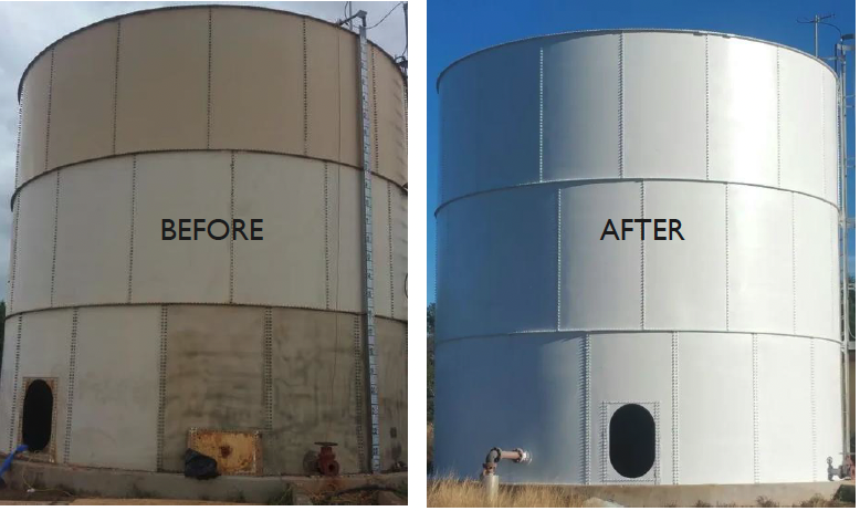 GEI Works offers high-performance poly-urea waterproofing coating of new or reconditioned tanks. Poly-urea Coatings are one of the most cost-effective ways to control leaks, prevent corrosion, and extend the lifespan of your rainwater collection tank. Poly-urea spray liners have been used on old leaking tanks to provide a new impermeable layer, as well as on new cistern tanks to provide corrosion, rust or leak protection for the duration of their use. These spray liners can salvage existing welded steel, grain bin, cistern or corrugated tanks, saving demolition and replacement costs.
